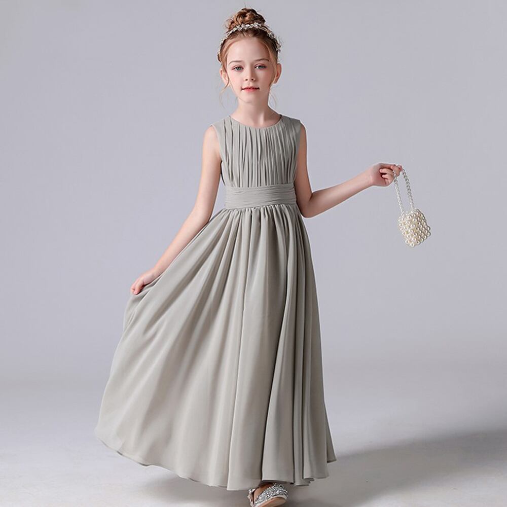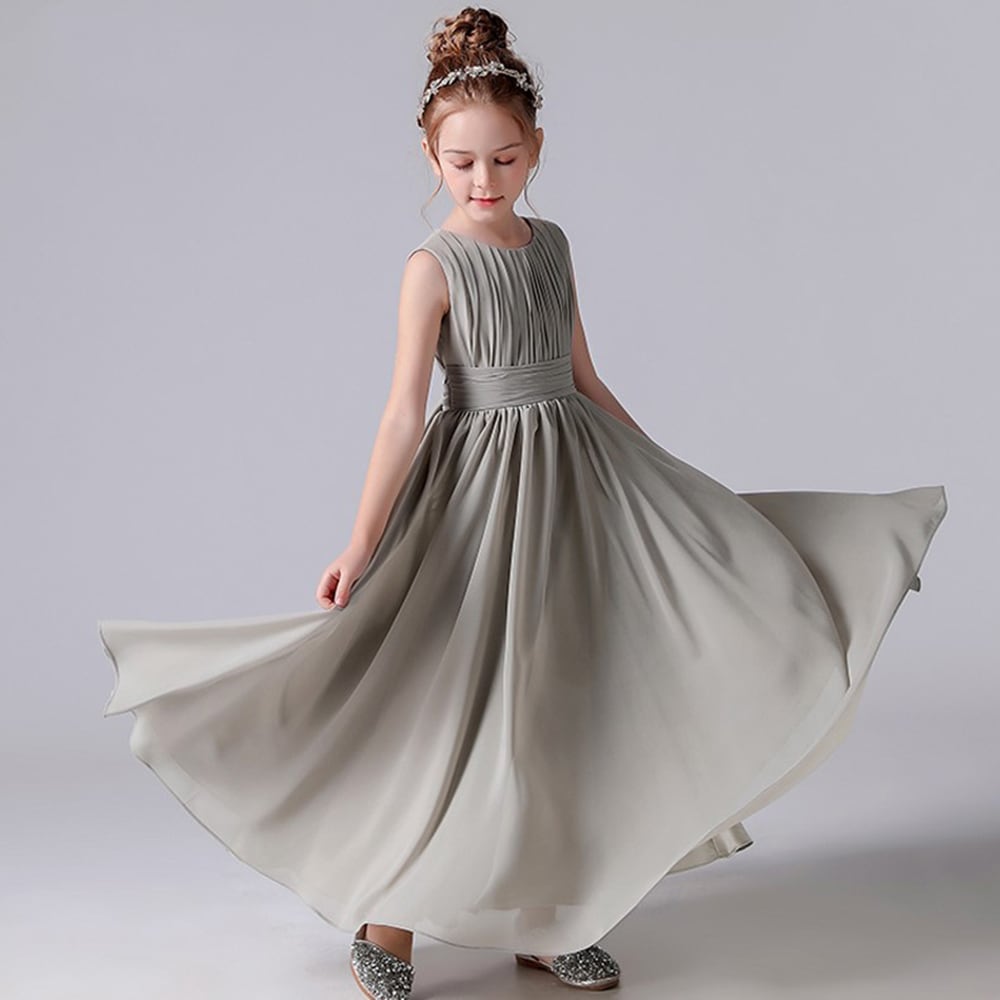 Dideyttawl シフォン プリーツ フラワー ガール ドレス サッシ子供結婚式誕生日パーティー ページェント ジュニア花嫁介添人ドレス 2022
