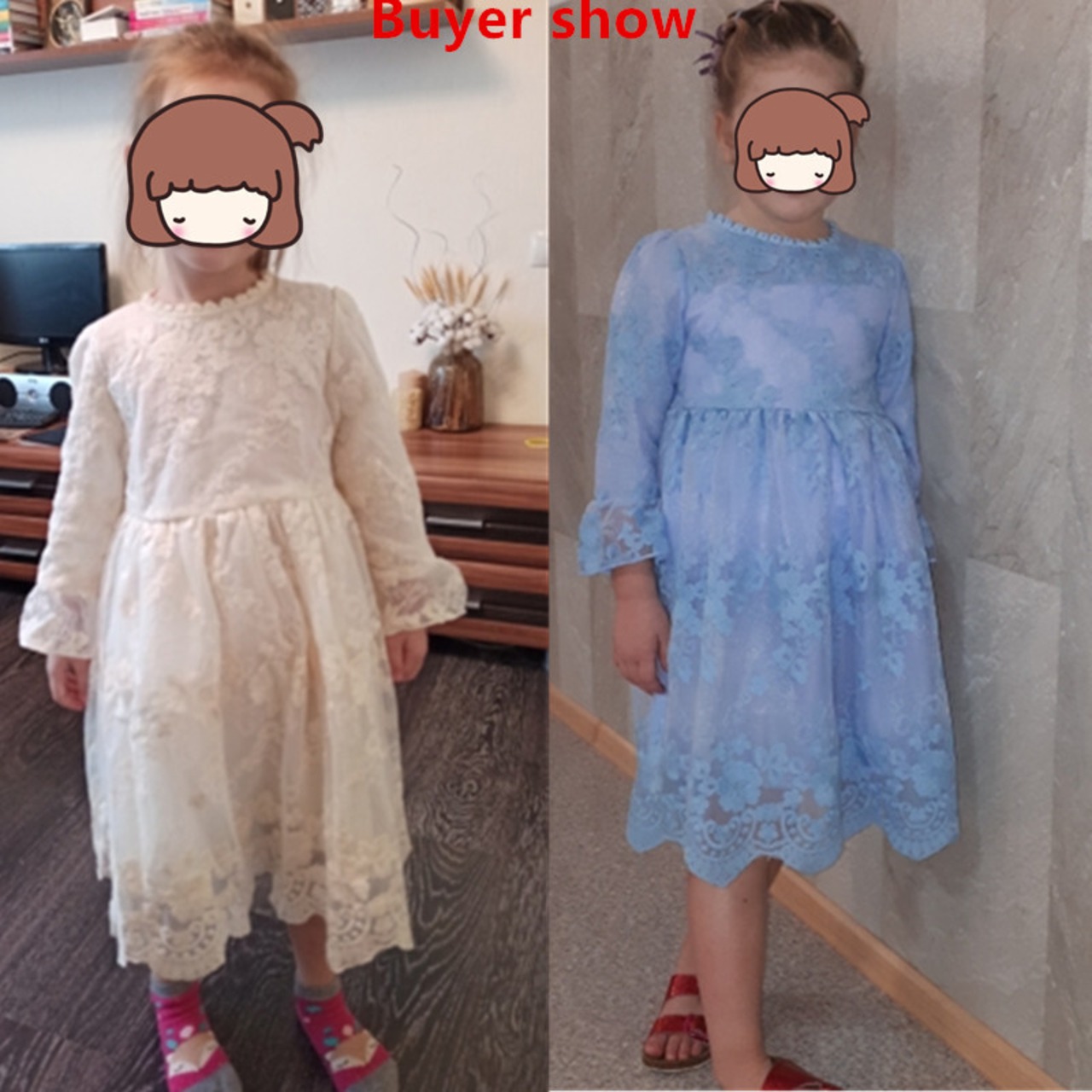 フラワーガールドレス結婚式の儀式 3-8T 子供白レース花柄誕生日パーティー秋長袖イブニング服