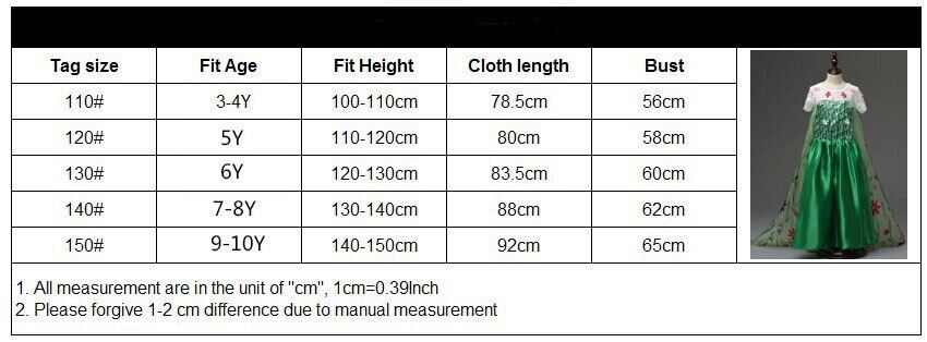 エルザドレスガールドレスコスプレ雪の女王ドレスベビーキッズ服ファンタジア Vestidos グリーンあちこち子供 3-10Y