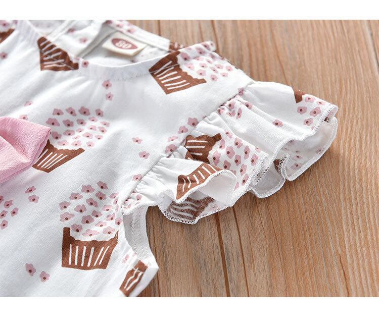 ユーモアクマ新しい女の子セットノースリーブ夏アイスクリーム弓トップ Tシャツ + パンツ 2 個スーツ幼児子供服