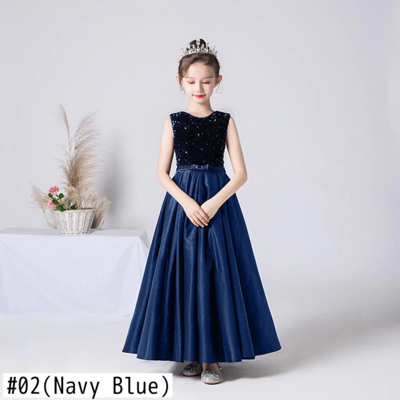 Dideyttawl キラキラ スパンコール サテン 女の子 mal ドレス ロング 誕生日 パーティー ドレス くるぶし丈 ガール ガウン ブラック ネイビー ブルー