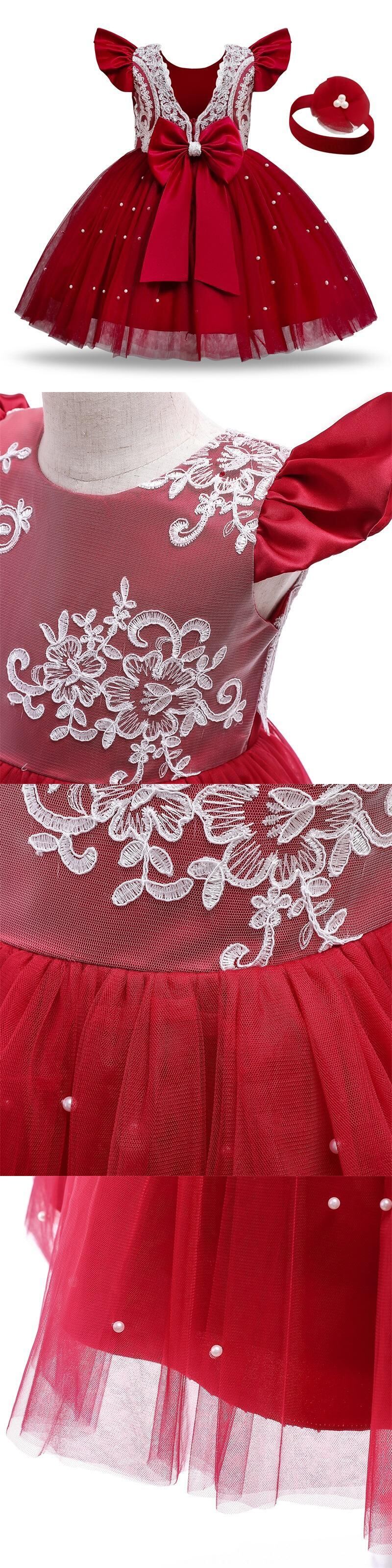 幼児ベビー 1st 誕生日パーティードレスキッズガールズフリル背中の開いたレースのボールガウン子供の結婚式のイブニング