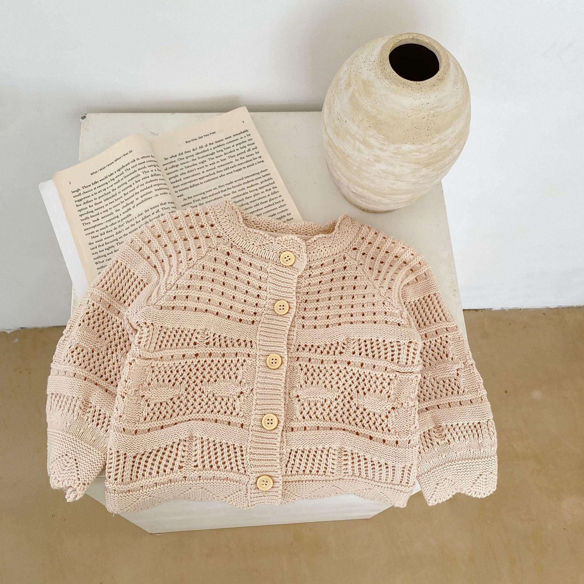 春の幼児服ベビーロンパースベビーニット中空パターンセーター 2 ピーススーツセット新生児ジャケットロンパース