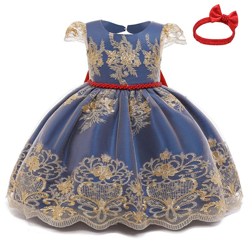 12 メートル女の赤ちゃんドレス子供刺繍花 1 年誕生日パーティーチュチュガウン幼児弓ビーズ服クリスマス