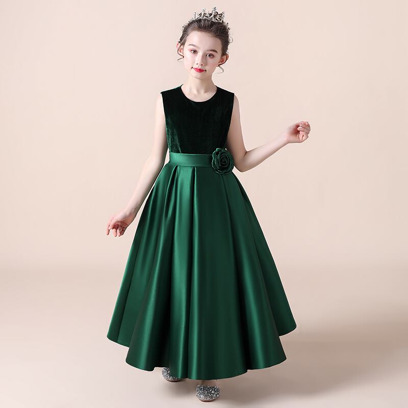 Dideyttawl サテン O ネック フラワー ガール ドレス コーデュロイ ロング ウェディング ドレス弓マル子供の誕生日ガウン