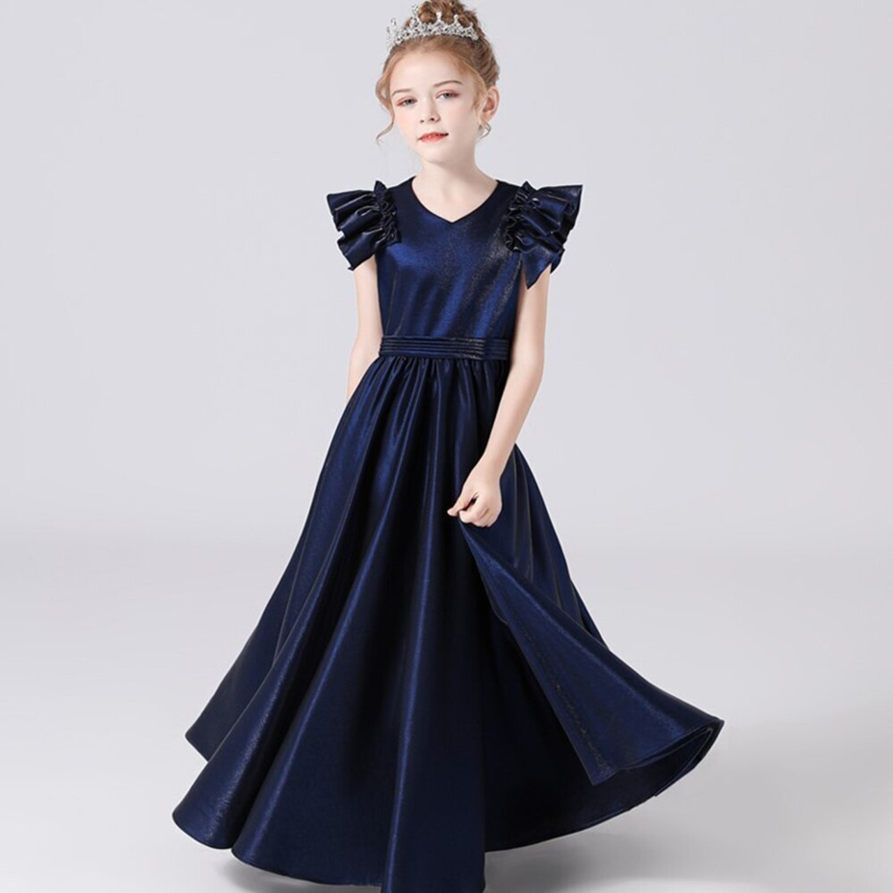 Dideyttawl ネイビー ブルー フラワー ガール ドレス ウェディング パーティー キラキラ ノースリーブ ロング 誕生日 ページェント ガウン 2022