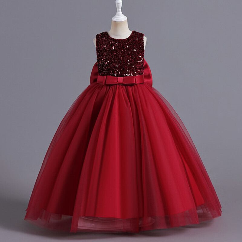 スパンコール フラワー ガール ドレス結婚式赤クリスマス年子供パーティー ガラ ドレス背中の開いた十代のページェント ウエディング ドレス