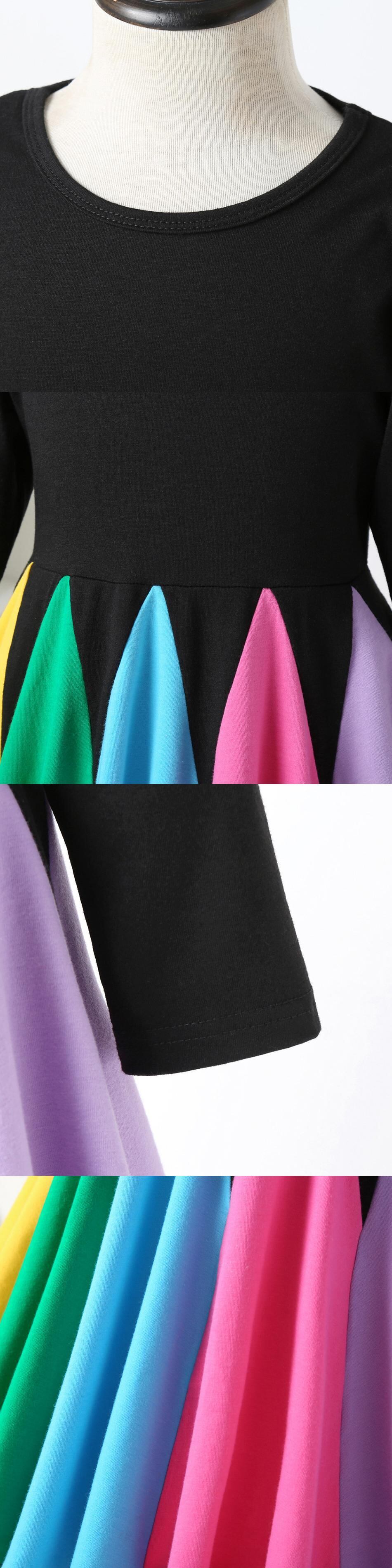 おしゃれ 子供スケータードレスベビーレインボーパッチワーク誕生日衣装女の子スイングフレア幼児プレイウェアひねり服